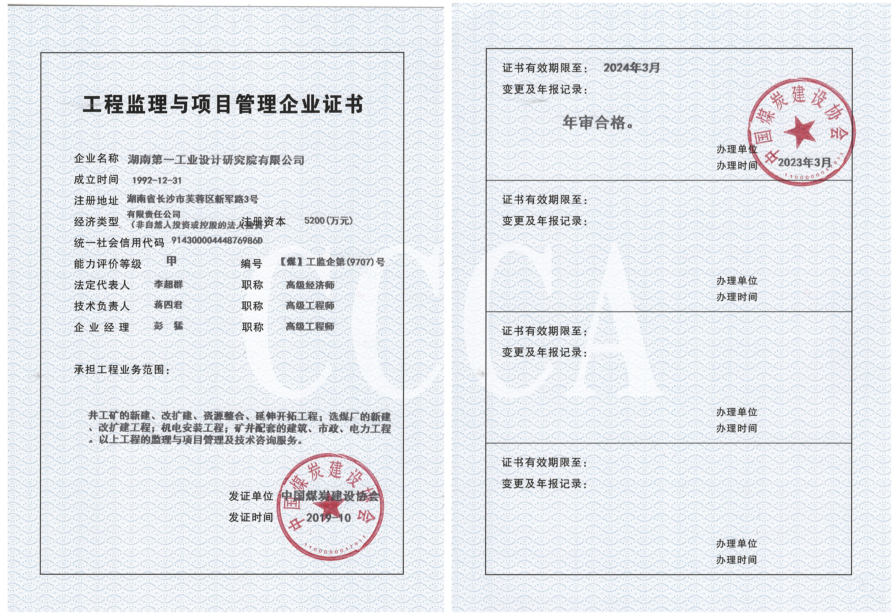 工程咨詢單位甲級資信證書